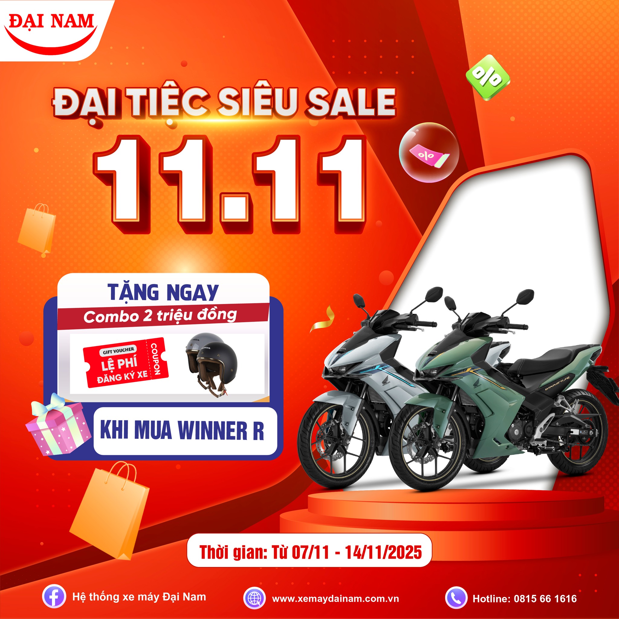 Hệ thống xe máy Đại Nam xin chúc mừng anh Nguyễn Minh Tài – vị khách hàng may mắn đầu tiên trúng 01 xe Honda Wave Alpha trong chương trình “Rinh lộc năm mới – Hứng khởi du xuân”.