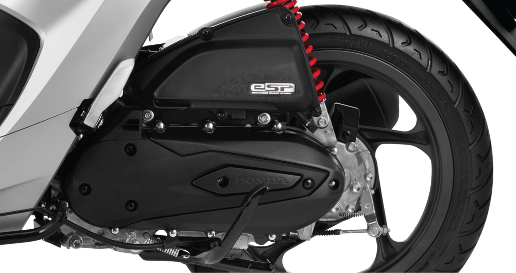 eSP – Động cơ thông minh với thiết kế nhỏ gọn, 110cc, 4 kỳ, xy-lanh đơn, làm mát bằng không khí và tích hợp những công nghệ tiên tiến: hệ thống phun xăng điện tử (PGM-FI),động cơ tích hợp bộ đề ACG, hệ thống ngắt động cơ tạm thời (Idling stop), giảm thiểu ma sát và khả năng đốt cháy hoàn hảo.